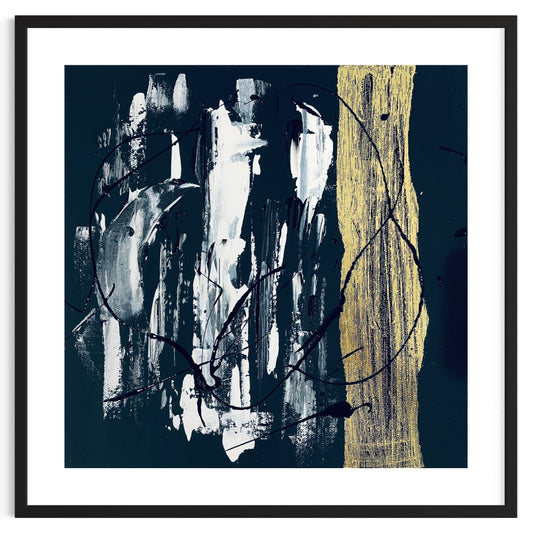 Abstract Black and Gold Liquid Art Print Framed