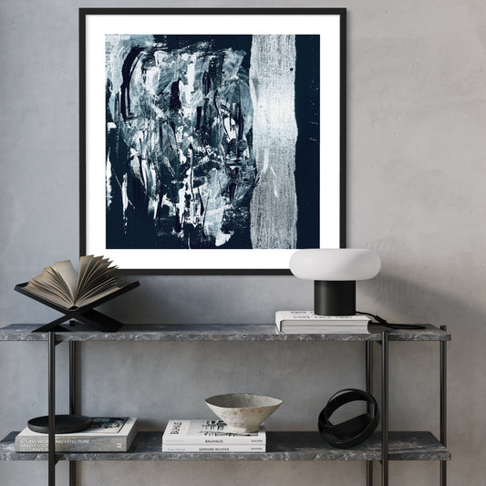 Abstract Black and Silver Liquid Art Print Framed